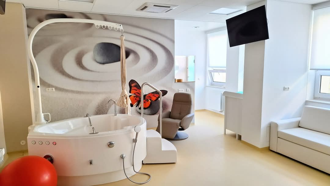 | Uspořádání většiny porodních místností: | Většina rodiček má k dispozici samostatnou porodní místnost se sociálním zařízením. | samostatná porodní místnost se sociálním zařízením